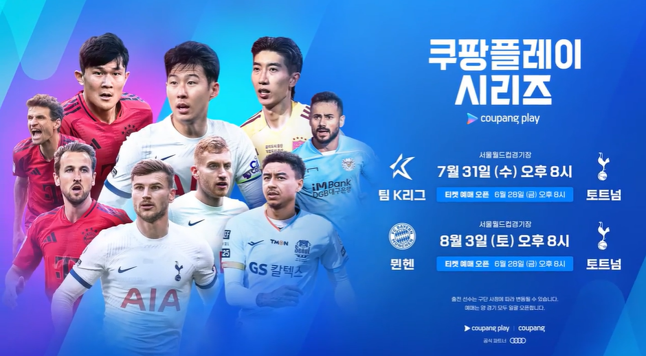 올해에도 쿠팡플레이에서는 손흥민 선수가 소속되어 있는 토트넘 홋스퍼와 김민재 선수가 소속되어 있는 바이에른 뮌헨을 한국에서 직접 관전할 수 있도록 7월 31일과 8월 3일 일정으로 대회를 개최하였습니다.