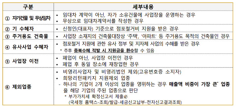 ● 그 외 아래 지원제외 요건 해당 시 지원불가